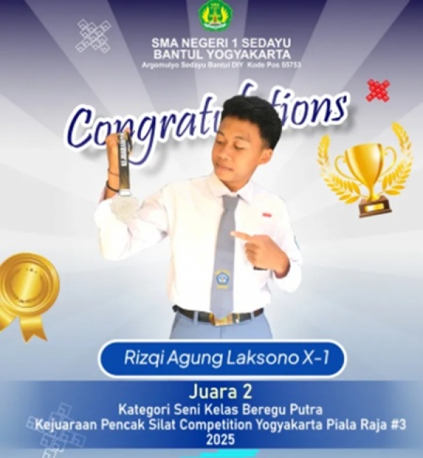 Selamat untuk kawan" kita Rizqi Agung Laksono siswa kelas X-1 yang meraih Juara 2 Kategori Seni Kelas Beregu Putra di Kejuaraan Pencak Silat Competition Yogyakarta Piala Raja 3 tahun 2025